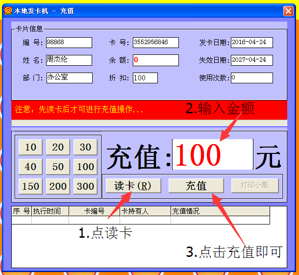 1.把要充值的卡放到发卡器上