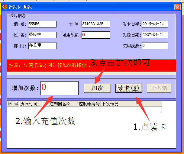 2-2.计次卡充值次数(金额卡不可操作